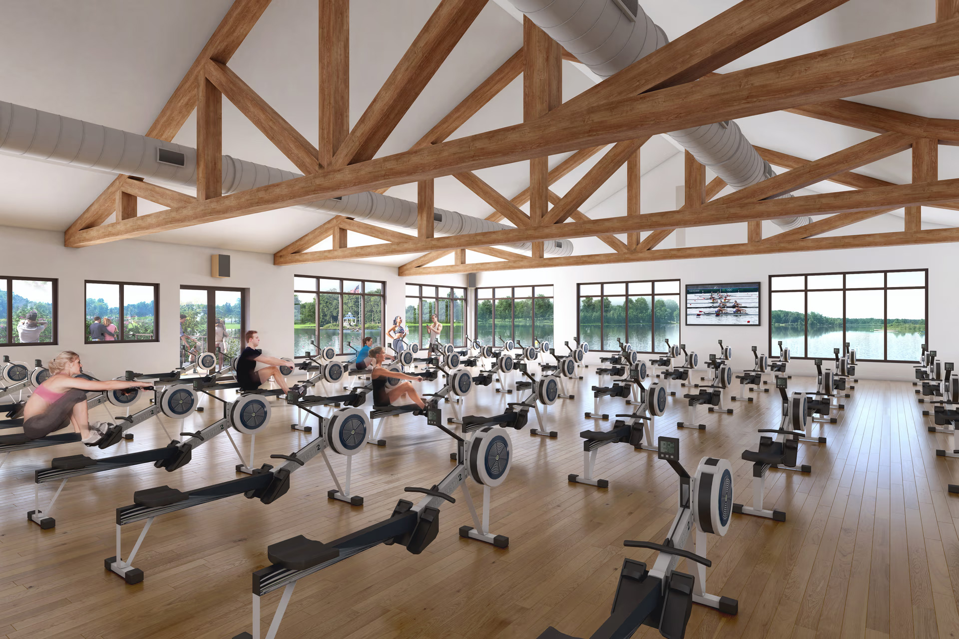 After years of stalled development under a different project management group, Princeton National Rowing Association engaged Pandion Development Management to lead forward the project through final design, entitlements, and construction. The state‑of‑the‑art mass timber facility features integrated strength‑training and recovery areas, expanded erg space, lounge and event zones, locker and repair facilities, all supporting elite athlete performance and broad community outreach.